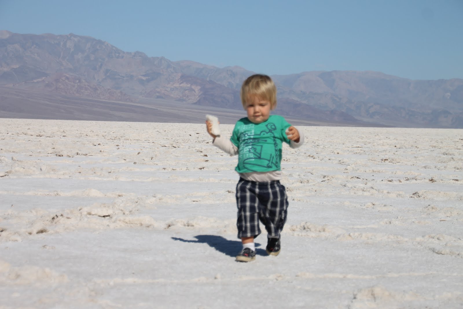 Though our tent did not survive the elements, Sisto went to 282 feet below sea level and lived to tell the stories. Here are a couple of pictures from the salt flats in Death Valley.